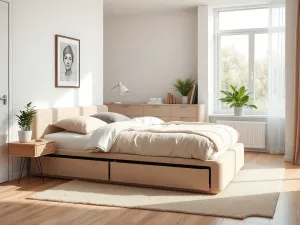 • Wybieraj minimalistyczne, wielofunkcyjne meble, takie jak szafy z przesuwanymi drzwiami i łóżka z pojemnikami na pościel.
